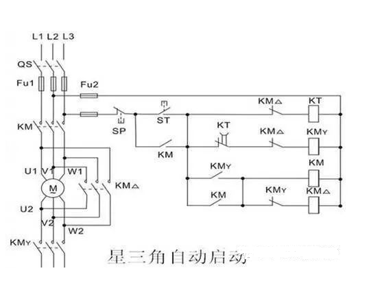 這種Y-Δ(星三角)起動方法,目的是降低起動電流,減小對電網(wǎng)及電氣設備的危害,這個方法只適合于幾十千瓦的小型電機,如大型電機采用的是自藕變壓器起動方式。
