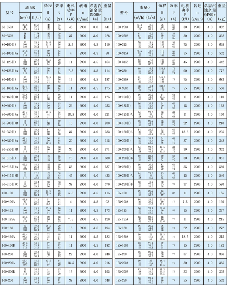 皖金泵閥不銹鋼臥式離心泵主要參數(shù):