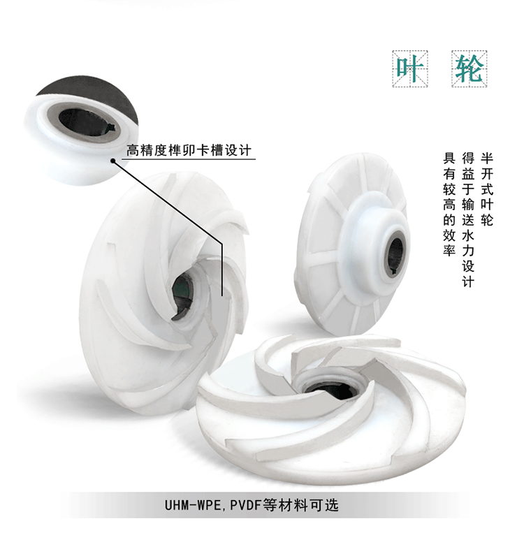 可靠厚實,外面鑲包金屬夾套,結構牢固,運行穩定,且能有效解決長期室外運行造成的塑料模壓件老化等不利影響。過流部件采用耐腐耐磨的UHM-WPE,PVDF等非金屬材料制造。該泵雖為半開式葉輪,得益于成熟的水力設計,具有較高的效率。采用獨特的耐顆粒集裝式單,雙端面機械密封。